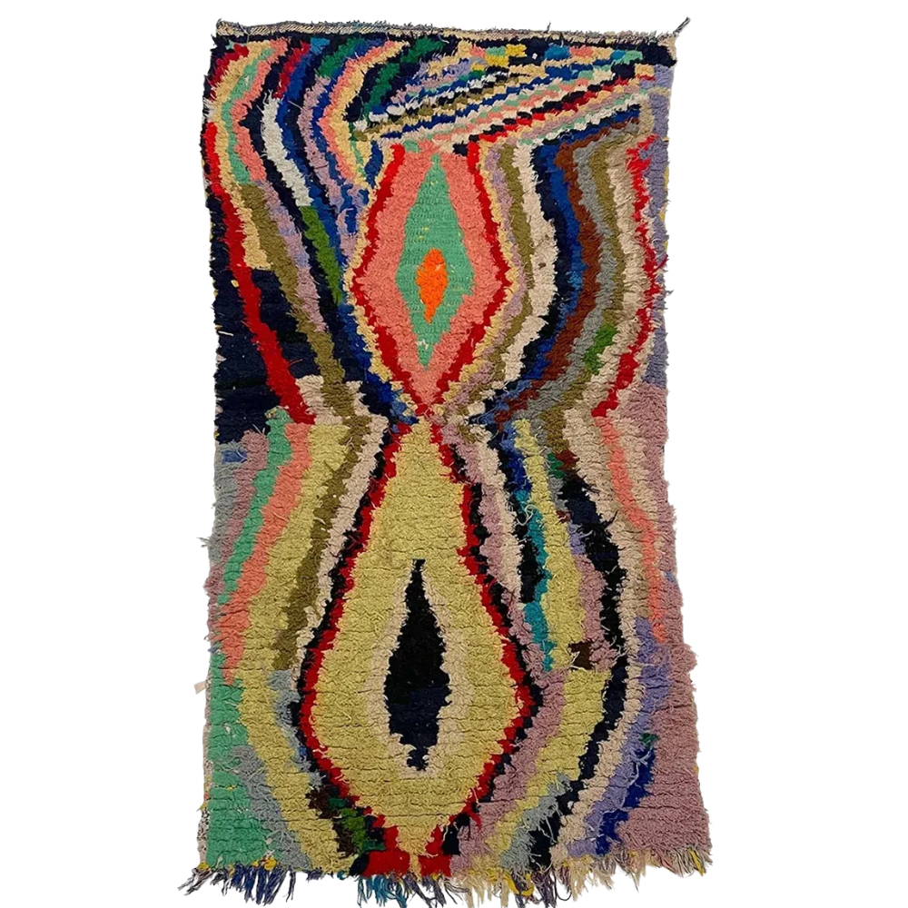 Vintage Moroccan Boucherouite Rug – Handwoven Wool and Cotton, 5’4″ x 6’7″
