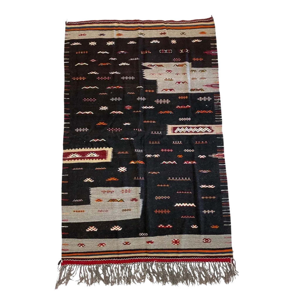 Modern Handwoven Moroccan Akhanif Wool Rug – Black and Grey Flatweave Kilim, 3’11” x 6’2″