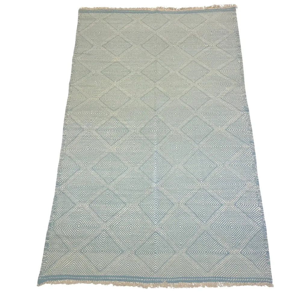 Custom Handwoven Moroccan Wool Rug – Blue Zig Zag Geometric Design, 3’4″ x 4’11”