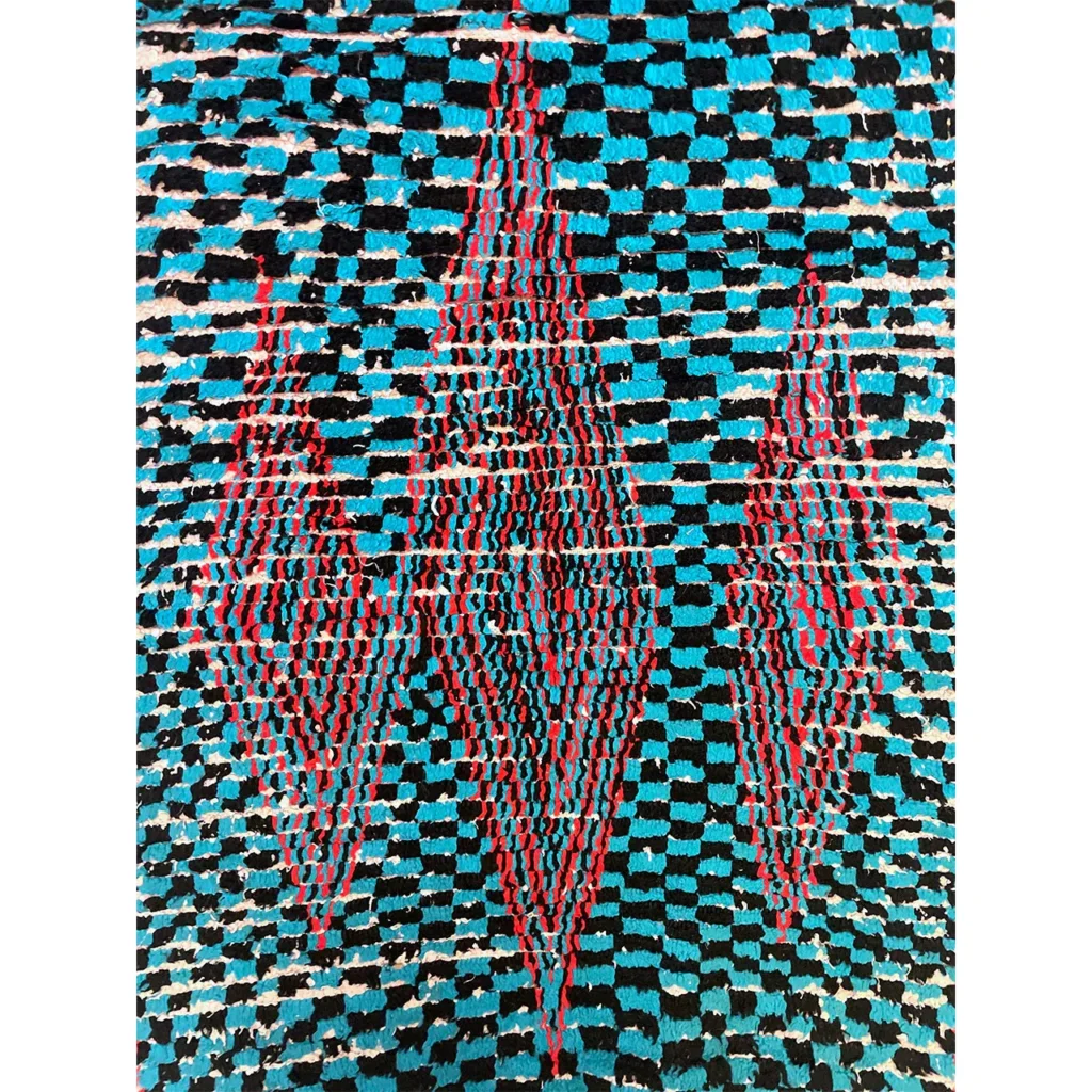 Handwoven Moroccan Boucherouite Wool Rug – 3’ x 5’ Blue and Black Checkered Pattern